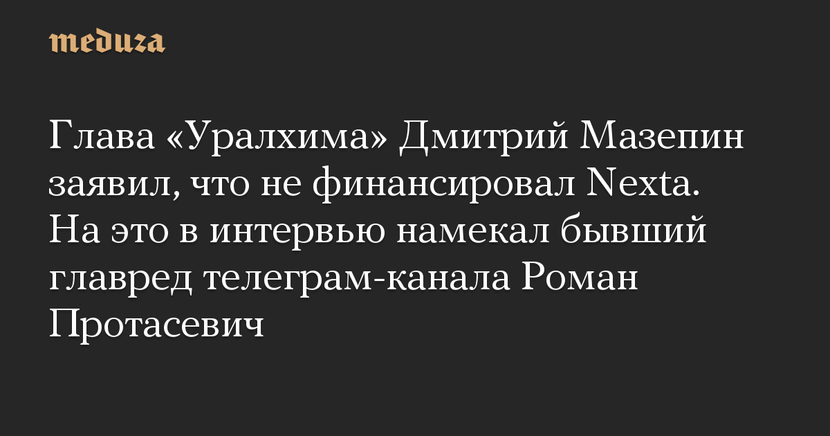 Глава «Уралхима» Дмитрий Мазепин заявил, что не финансировал Nexta. На это в интервью намекал бывший главред телеграм-канала Роман Протасевич