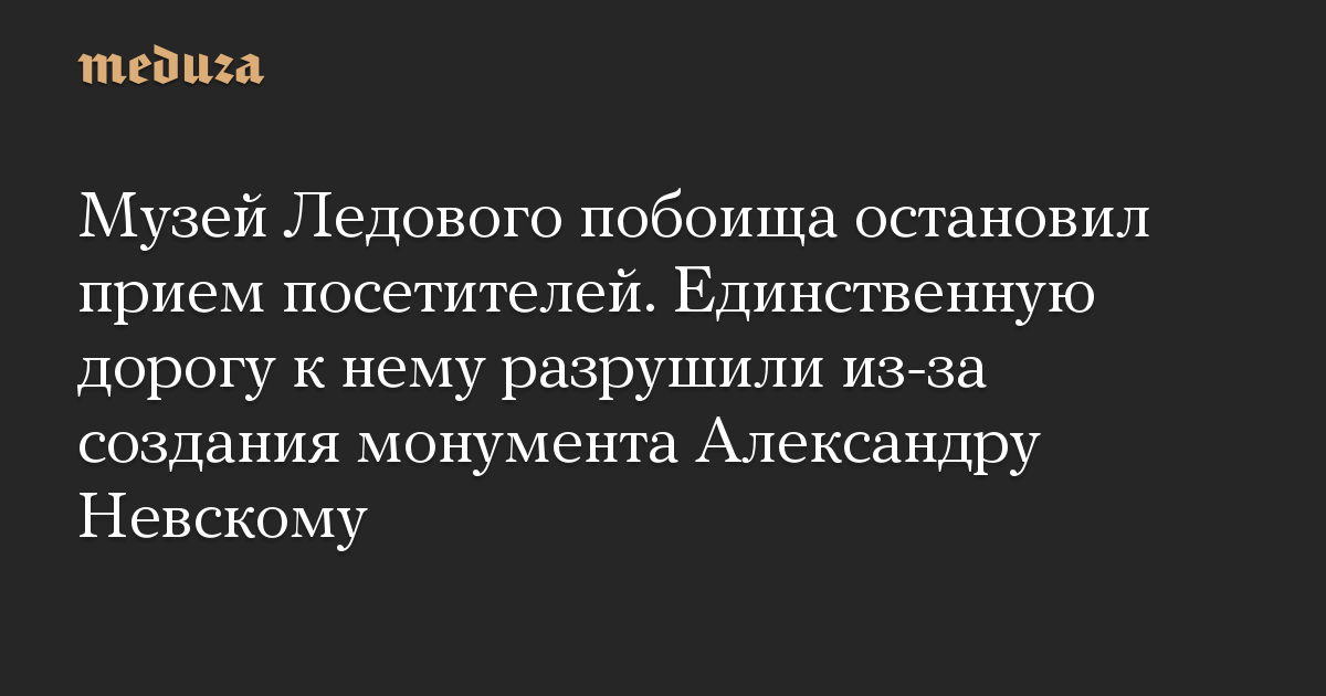 В связи с тяжелым аварийным состоянием единственной дороги, соединяющей трассу Псков — Гдов с деревней Самолва, я, осознавая ответственность за наших гостей, принял непростое в юбилейный год Святого благоверного князя Александра Невского решение прекратить на неопределенный срок прием и обслуживание посетителей Музея истории Ледового побоища.
