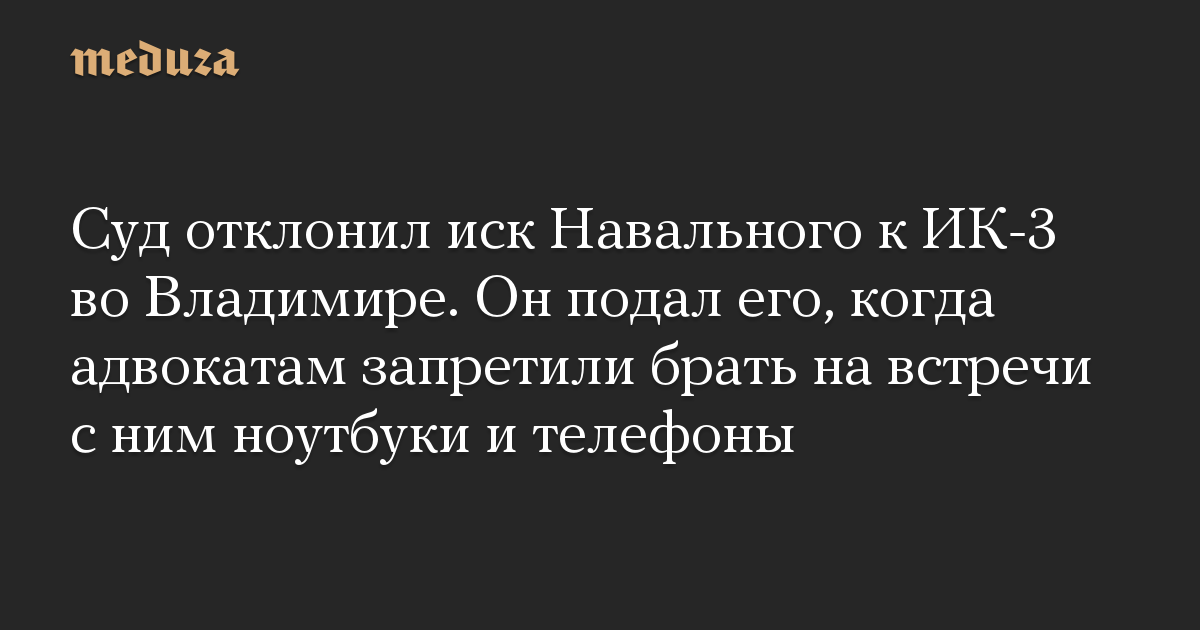 Суд отклонил иск Навального к ИК-3 во Владимире. Он подал его, когда адвокатам запретили брать на встречи с ним ноутбуки и телефоны
