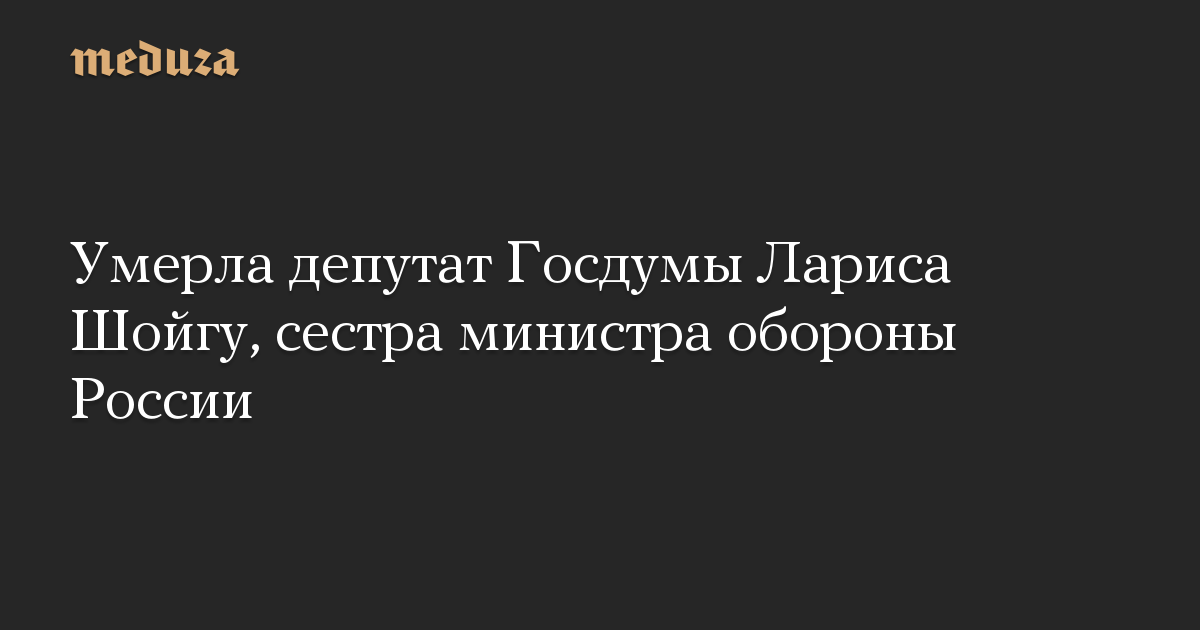 Умерла депутат Госдумы Лариса Шойгу, сестра министра обороны России