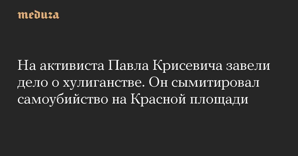 В отношении активиста Павла Крисевича, который днем 11 июня устроил перформанс с самоубийством на Красной площади в Москве, возбуждено уголовное дело по статье о хулиганстве, сообщается на сайте МВД РФ.