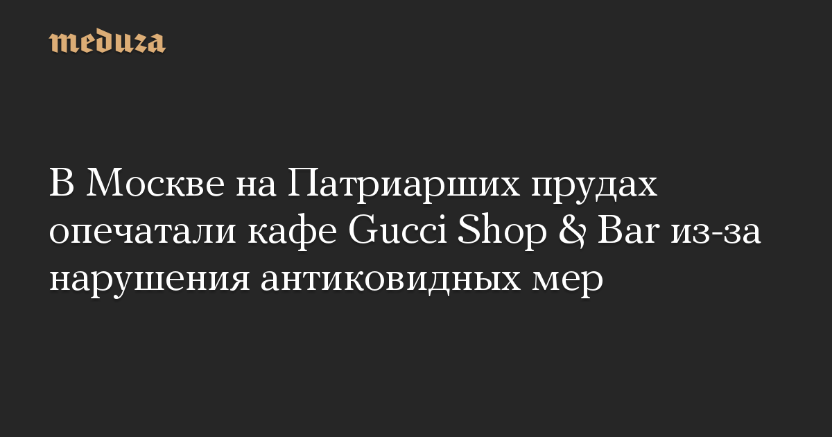 В Москве на Патриарших прудах опечатали кафе Gucci Shop & Bar из-за нарушения антиковидных мер