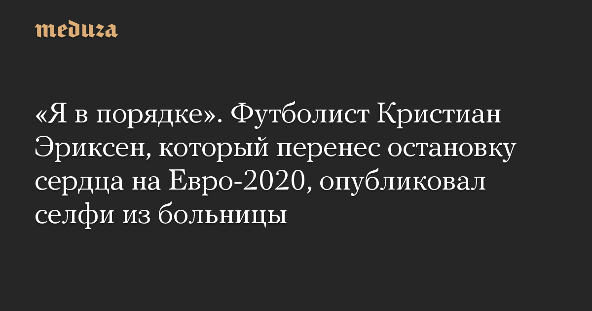 «Я в порядке». Футболист Кристиан Эриксен, который перенес остановку сердца на Евро-2020, опубликовал селфи из больницы