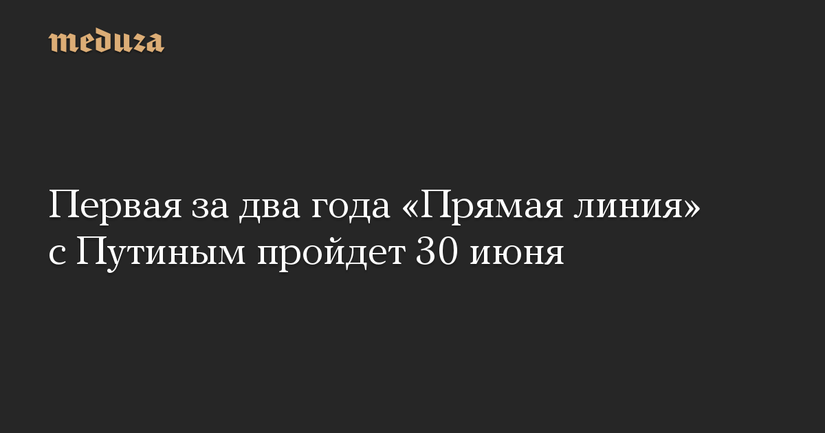 Программа «Прямая линия с Владимиром Путиным» выйдет в эфир 30 июня в 12:00 по московскому времени, сообщил Кремль. Программу среди прочего покажут на «Первом канале», «России 1», «России 24» и НТВ.