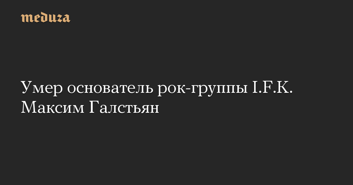 Основатель и единственный бессменный участник российской рок-группы I.F.K., гитарист Максим Галстьян умер в Москве в ночь на 20 июня, сообщается на странице коллектива в ВК.