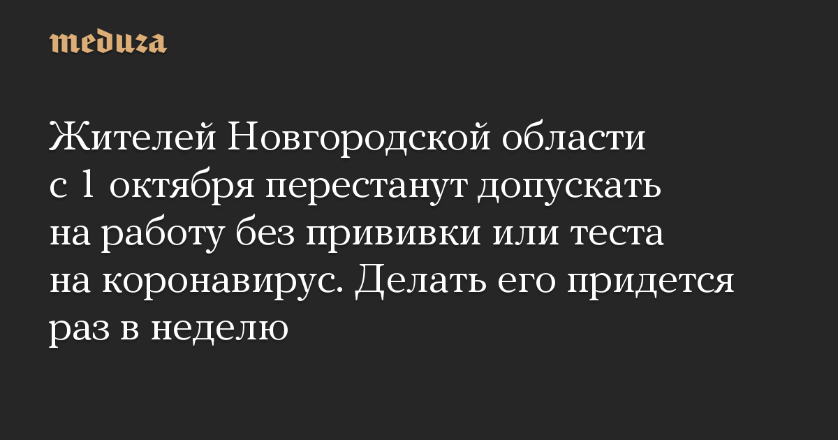 Жителей Новгородской области с 1 октября перестанут допускать на работу без прививки или теста на коронавирус. Делать его придется раз в неделю
