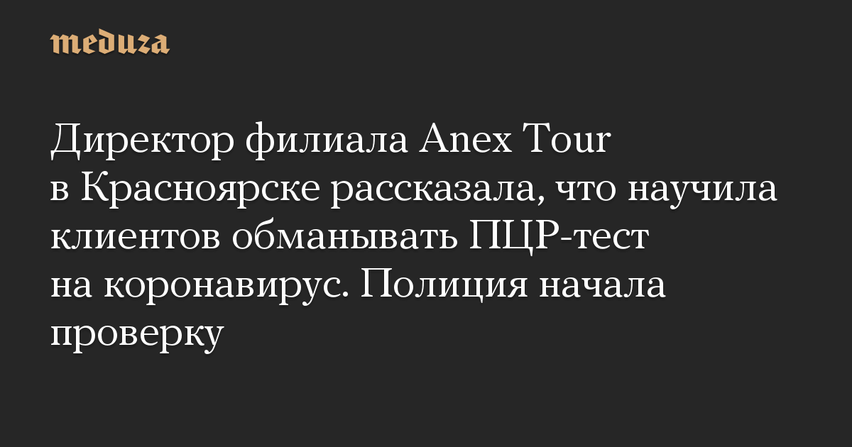 Директор филиала Anex Tour в Красноярске рассказала, что научила клиентов обманывать ПЦР-тест на коронавирус. Полиция начала проверку