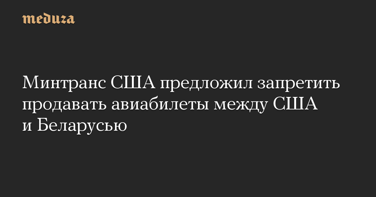 Министерство транспорта США предложило запретить продавать билеты на авиарейсы между США и Беларусью, в том числе на рейсы с пересадкой, говорится в заявлении ведомства.