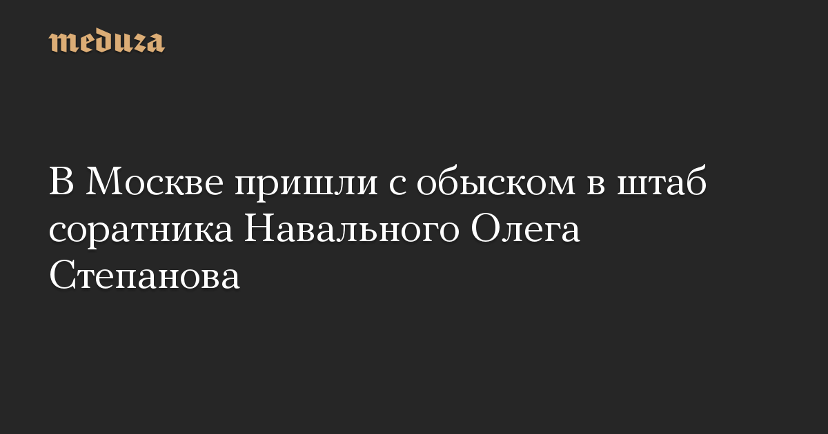 Сотрудники правоохранительных органов Москвы пришли с обыском в избирательный штаб бывшего главы московского штаба Алексея Навального Олега Степанова, который собирается баллотироваться в Госдуму. Об этом сообщает телеграм-канал «Олег Степанов. Команда».