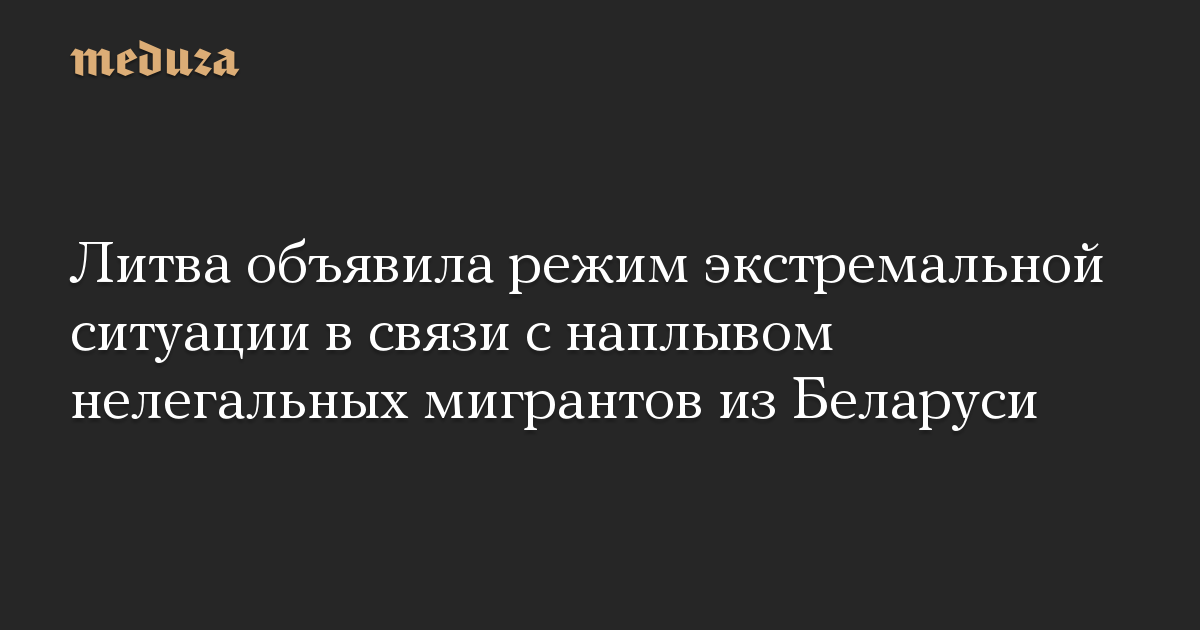 Правительство Литвы объявило в стране режим экстремальной ситуации в связи с большим количеством нелегальных мигрантов, прибывающих с территории соседней Беларуси. Об этом сообщило агентство BNS.