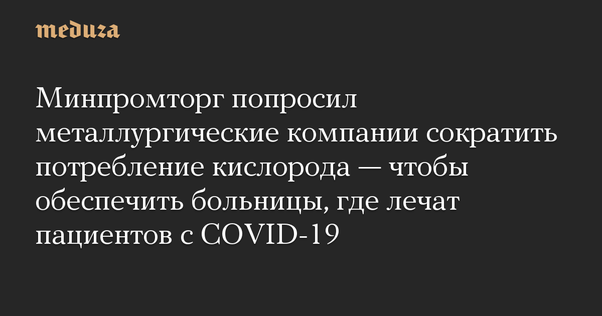 Минпромторг попросил металлургические компании сократить потребление кислорода — чтобы обеспечить больницы, где лечат пациентов с COVID-19