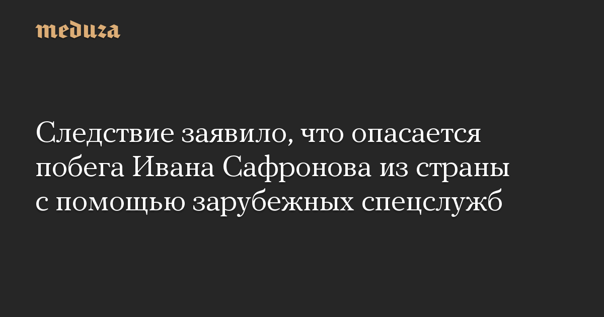 В ФСБ считают, что иностранные спецслужбы готовятся вывезти журналиста Ивана Сафронова из страны. Об этом, сообщают «Открытые медиа» со ссылкой на неназванного друга Сафронова, объявил следователь Александр Чабан на заседании Мосгорсуда, где рассматривалось продление меры пресечения журналисту.