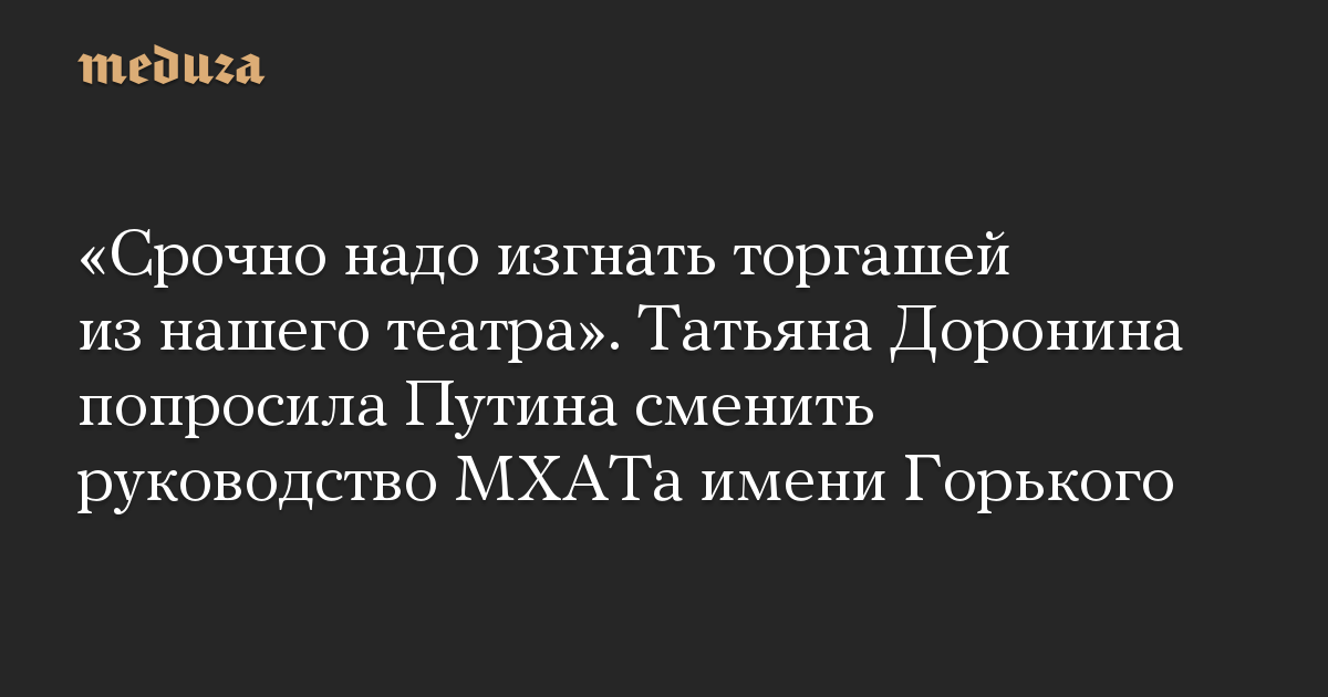 Президент МХАТа имени Горького Татьяна Доронина написала письмо Владимиру Путину с просьбой «изгнать» нынешнее руководство театра.
