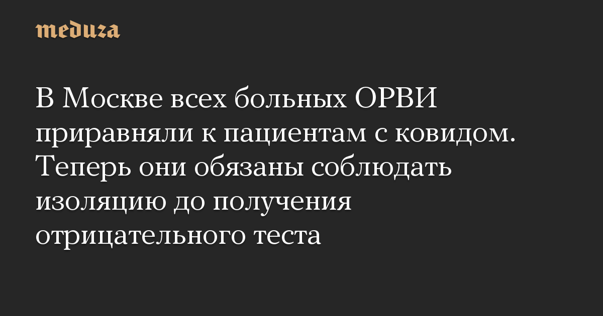 В Москве всех больных ОРВИ приравняли к пациентам с ковидом. Теперь они обязаны соблюдать изоляцию до получения отрицательного теста