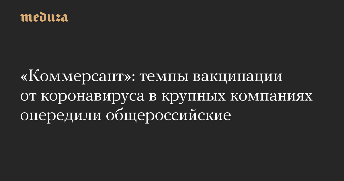 «Коммерсант»: темпы вакцинации от коронавируса в крупных компаниях опередили общероссийские