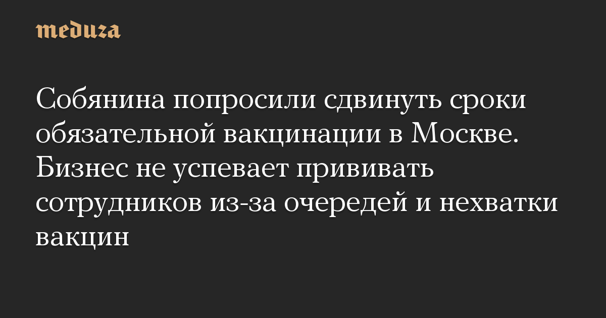 Собянина попросили сдвинуть сроки обязательной вакцинации в Москве. Бизнес не успевает прививать сотрудников из-за очередей и нехватки вакцин