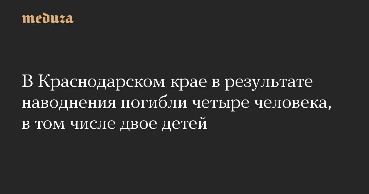 В Краснодарском крае в результате наводнения погибли четыре человека, в том числе двое детей