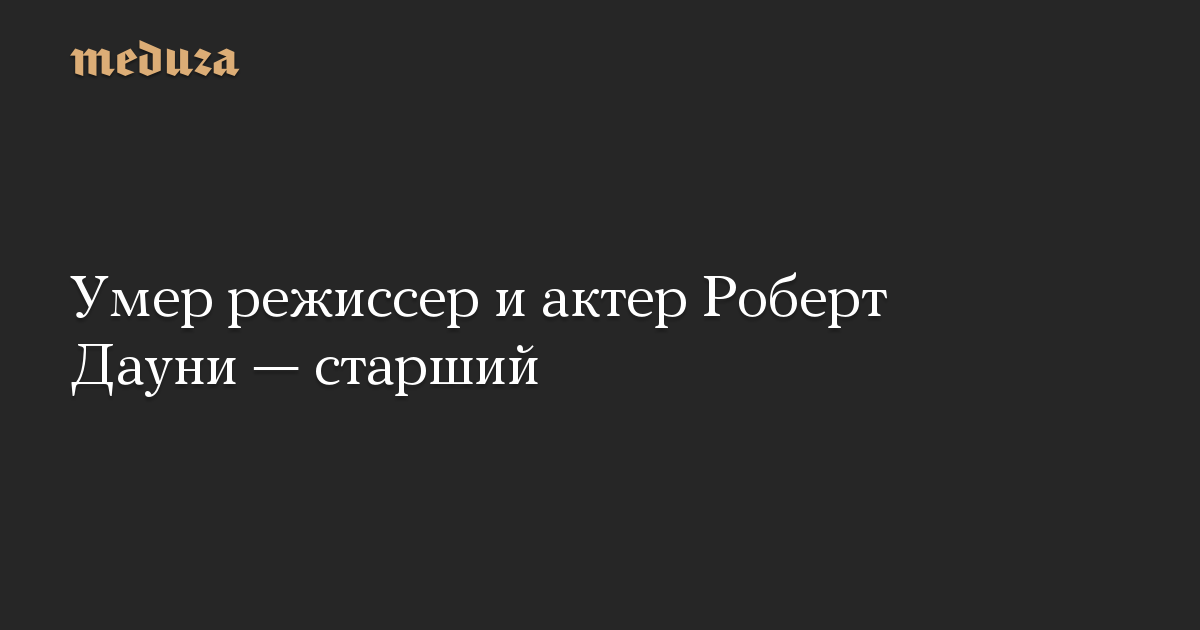 В США умер режиссер и актер Роберт Дауни — старший. Ему было 85 лет.