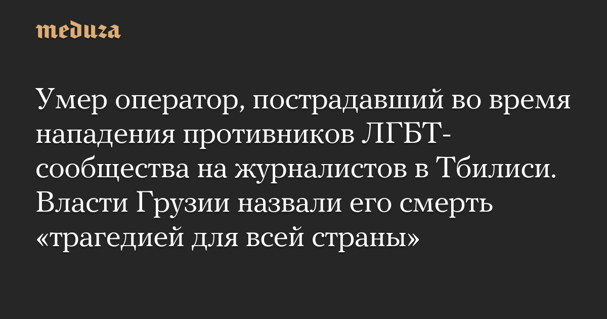 Умер оператор, пострадавший во время нападения противников ЛГБТ-сообщества на журналистов в Тбилиси. Власти Грузии назвали его смерть «трагедией для всей страны»