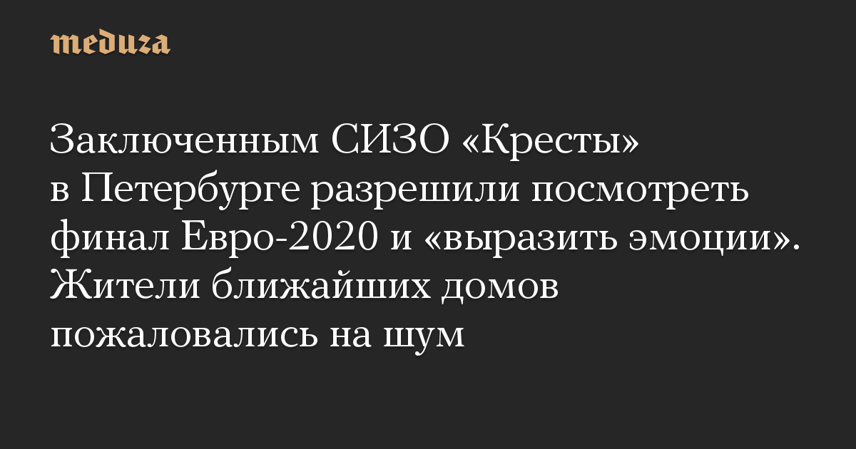 Заключенным СИЗО «Кресты» в Петербурге разрешили посмотреть финал Евро-2020 и «выразить эмоции». Жители ближайших домов пожаловались на шум