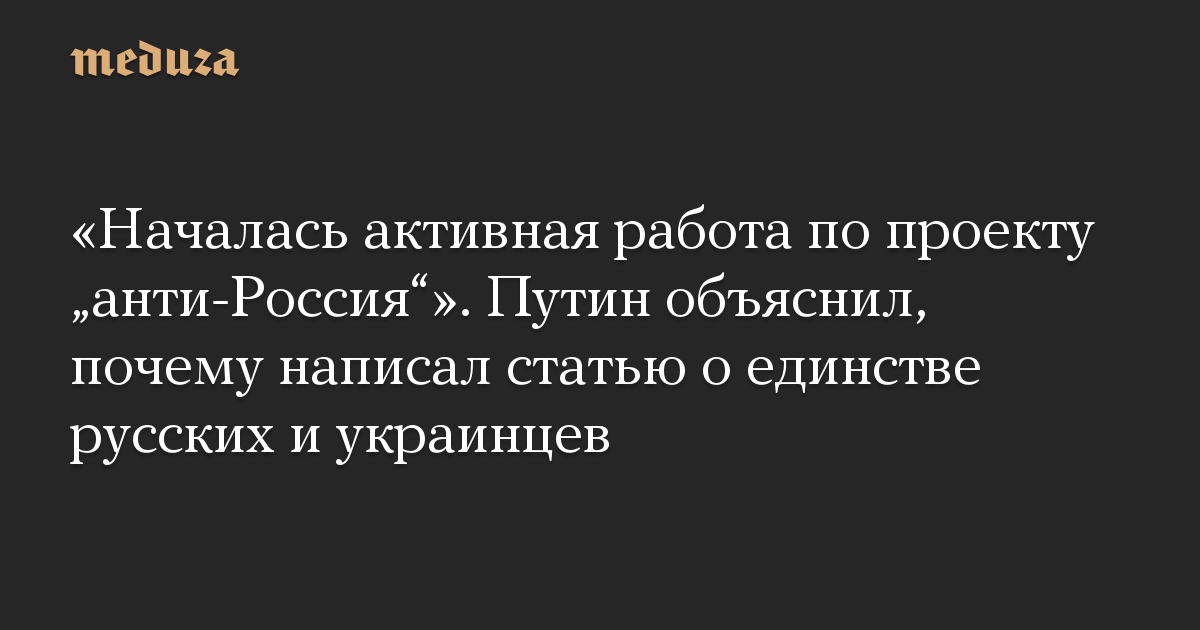 «Началась активная работа по проекту „анти-Россия“». Путин объяснил, почему написал статью о единстве русских и украинцев