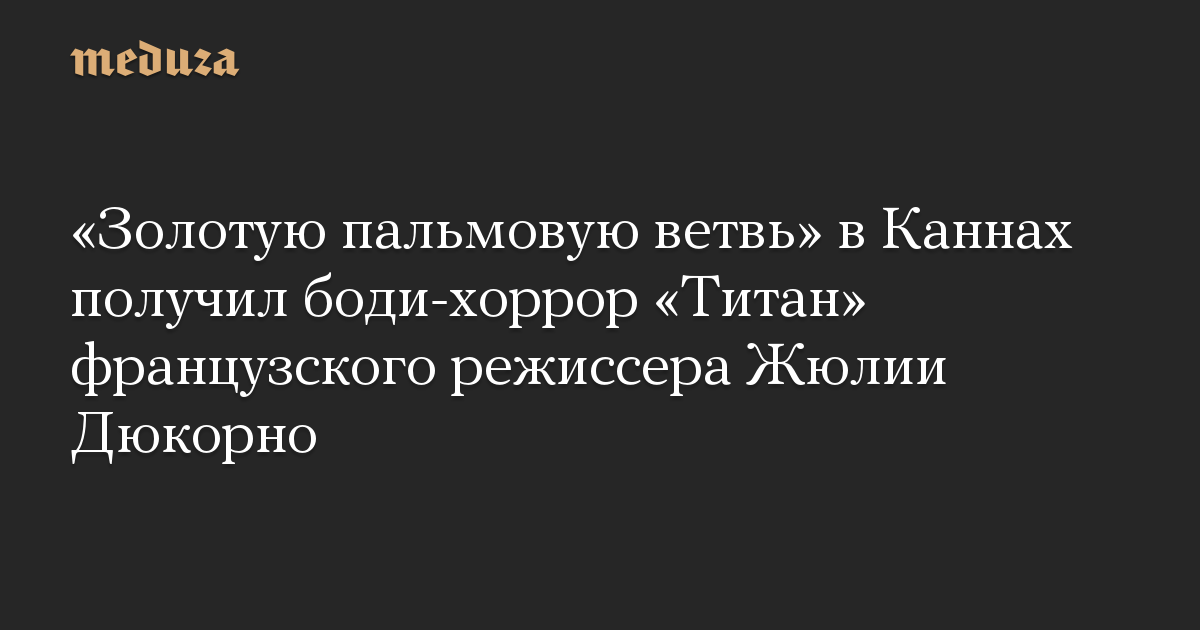 «Золотую пальмовую ветвь» — главный приз Каннского кинофестиваля — получил фильм «Титан» французского режиссера Жюлии Дюкорно. Об этом сообщается в официальном твиттере фестиваля.