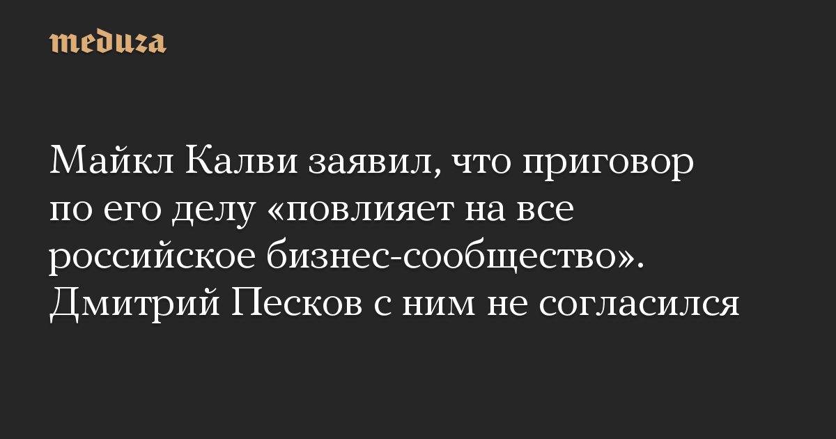 Майкл Калви заявил, что приговор по его делу «повлияет на все российское бизнес-сообщество». Дмитрий Песков с ним не согласился