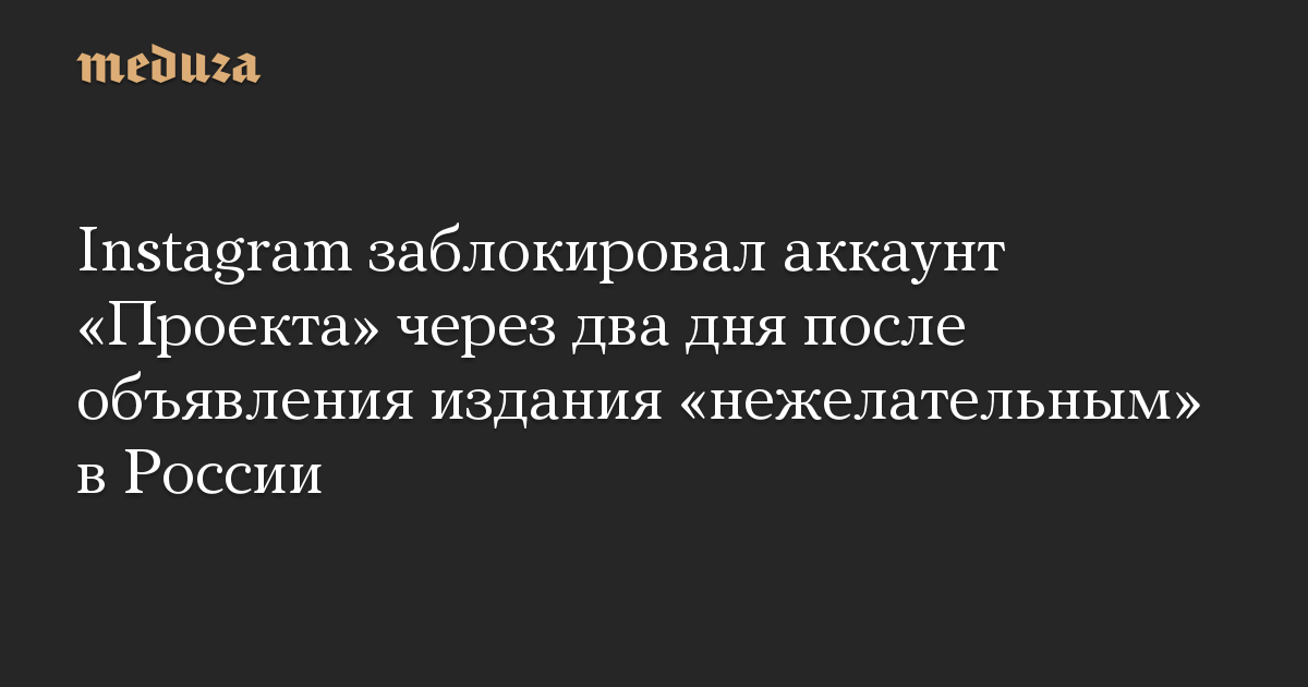 Instagram навсегда заблокировал аккаунт «Проекта» через два дня после объявления издания «нежелательным» в России. Об этом рассказал в фейсбуке главный редактор «Проекта» Роман Баданин.