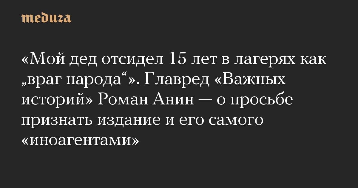 «Мой дед отсидел 15 лет в лагерях как „враг народа“». Главред «Важных историй» Роман Анин — о просьбе признать издание и его самого «иноагентами»