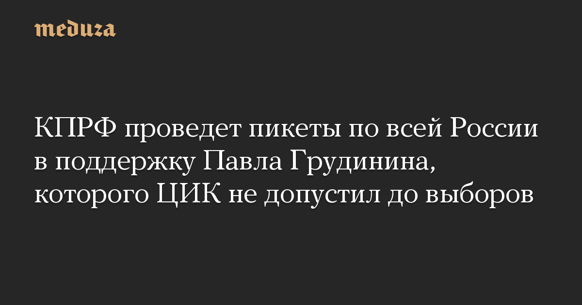 КПРФ проведет пикеты по всей России в поддержку бизнесмена Павла Грудинина, которого ЦИК отказался зарегистрировать кандидатом на выборы в Госдуму. Об этом сообщают «Открытые медиа» со ссылкой на зампредседателя ЦК партии Владимира Кашина.