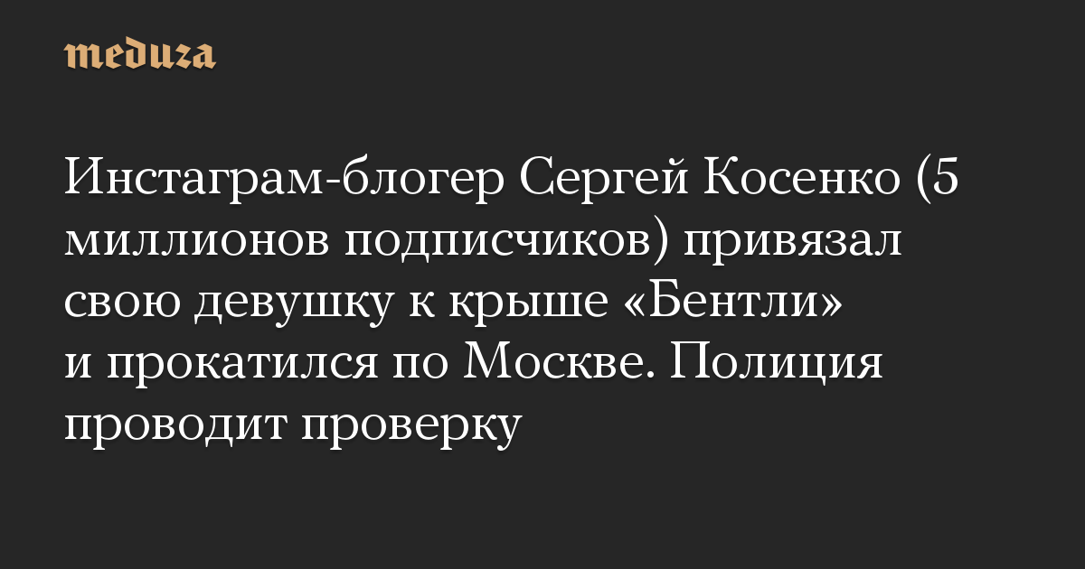 Инстаграм-блогер Сергей Косенко (5 миллионов подписчиков) привязал свою девушку к крыше «Бентли» и прокатился по Москве. Полиция проводит проверку