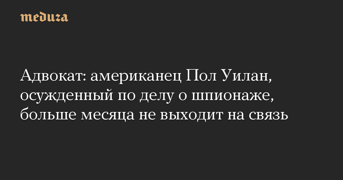 Американец Пол Уилан, которого приговорили в России к 16 годам колонии по обвинению в шпионаже, больше четырех недель не выходит на связь с семьей и посольством США, сообщила «Интерфаксу» адвокат Уилана Ольга Карлова.