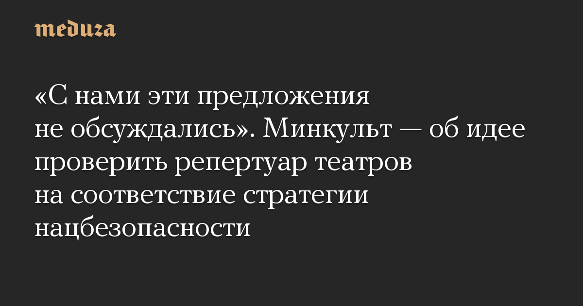 «С нами эти предложения не обсуждались». Минкульт — об идее проверить репертуар театров на соответствие стратегии нацбезопасности