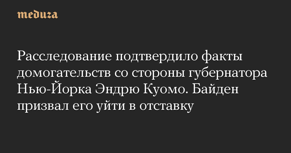 Расследование подтвердило факты домогательств со стороны губернатора Нью-Йорка Эндрю Куомо. Байден призвал его уйти в отставку