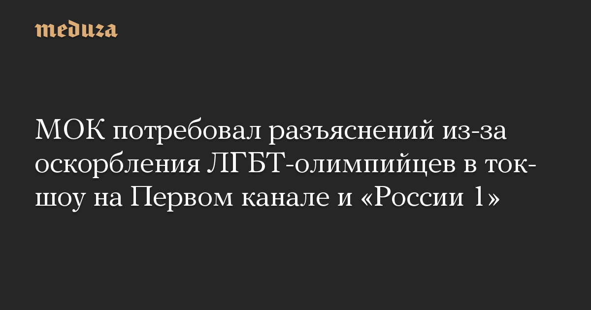 Международный олимпийский комитет (МОК) потребовал разъяснений из-за оскорблений в адрес ЛГБТ-спортсменов, принимающих участие в Олимпиаде в Токио, которые прозвучали в ток-шоу на Первом канале и «России 1».