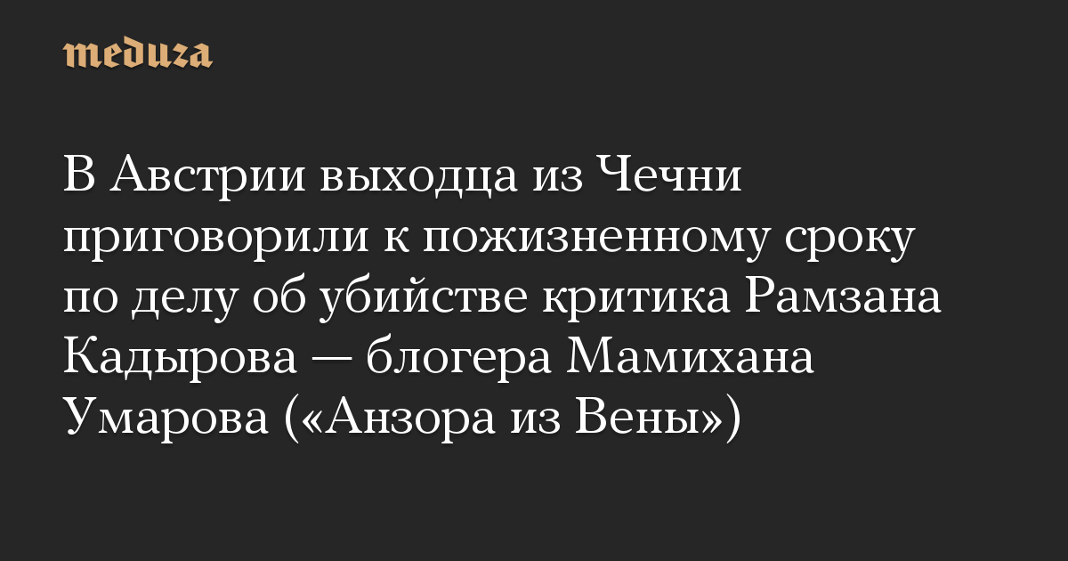 В Австрии выходца из Чечни приговорили к пожизненному сроку по делу об убийстве критика Рамзана Кадырова — блогера Мамихана Умарова («Анзора из Вены»)