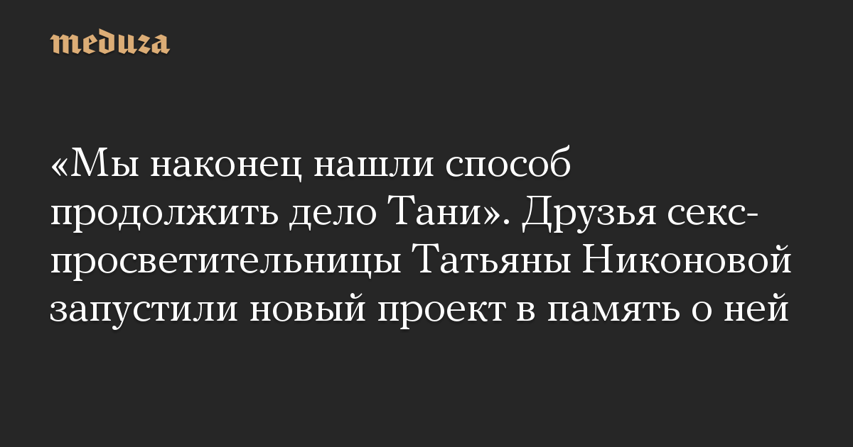 «Мы наконец нашли способ продолжить дело Тани». Друзья секс-просветительницы Татьяны Никоновой запустили новый проект в память о ней