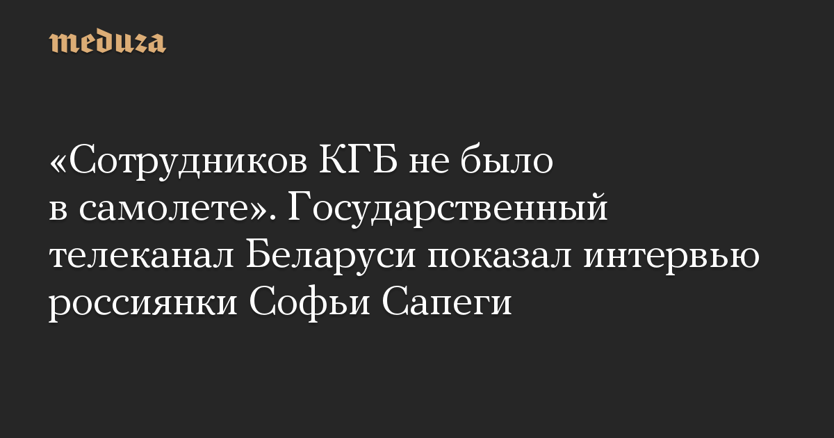 «Сотрудников КГБ не было в самолете». Государственный телеканал Беларуси показал интервью россиянки Софьи Сапеги