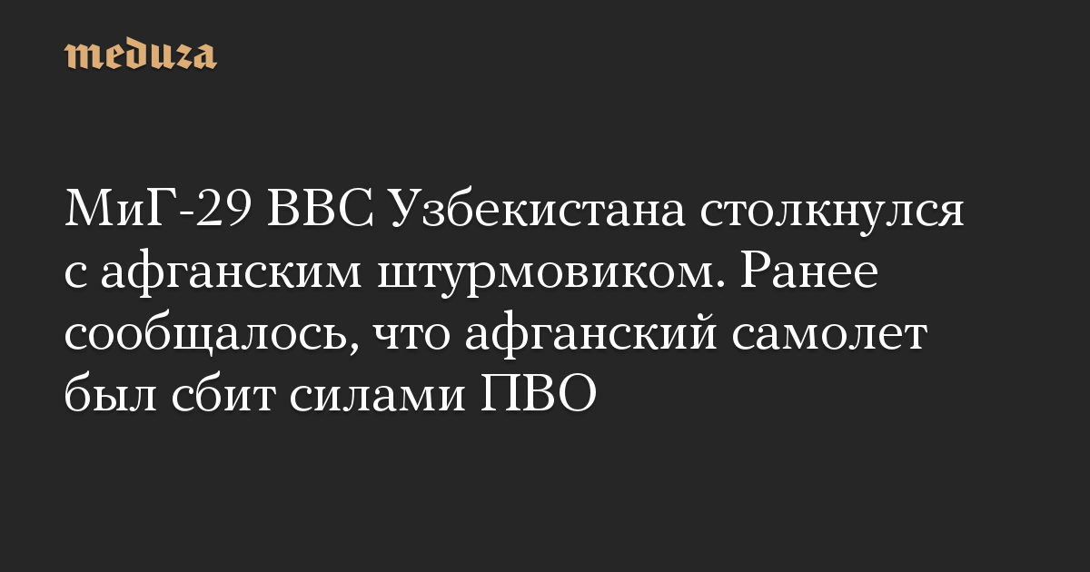 МиГ-29 ВВС Узбекистана столкнулся с афганским штурмовиком. Ранее сообщалось, что афганский самолет был сбит силами ПВО