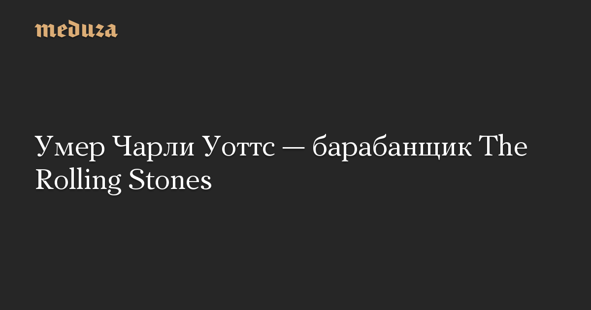 Британский музыкант, барабанщик рок-группы The Rolling Stones Чарли Уоттс умер в возрасте 80 лет, сообщает BBC News, ссылаясь на заявление его агента.