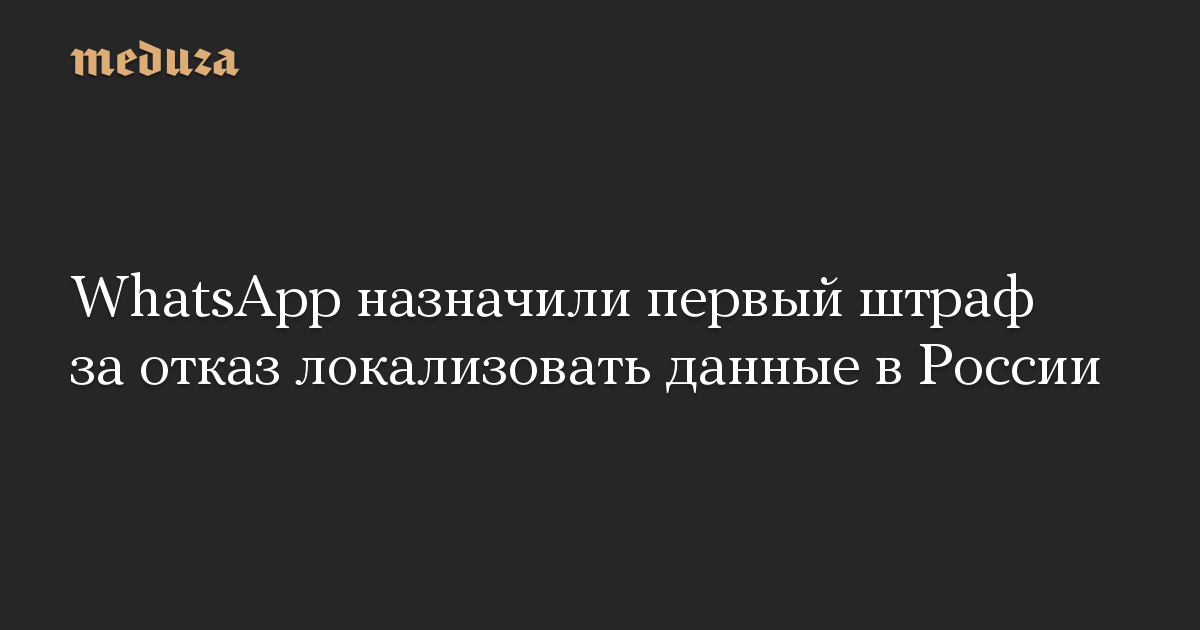 Мессенджер WhatsApp оштрафован на 4 миллиона рублей за отказ локализовать данные российских пользователей в РФ, сообщает «Интерфакс» со ссылкой на Роскомнадзор. Для WhatsApp это первый подобный штраф.