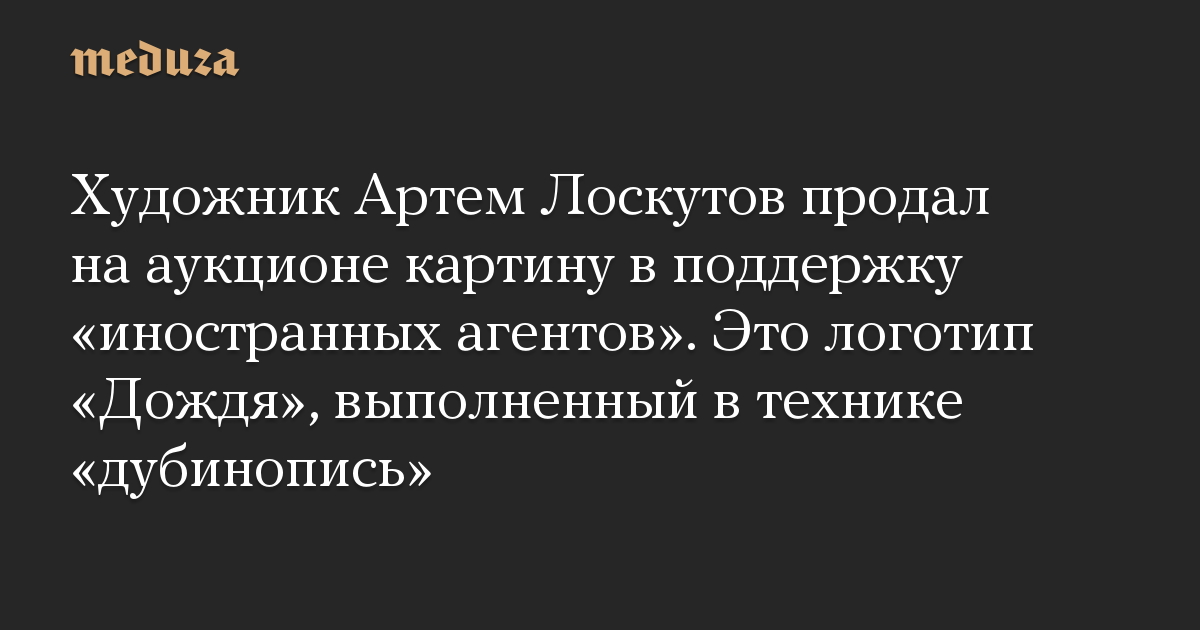 Художник Артем Лоскутов продал на аукционе картину в поддержку «иностранных агентов». Это логотип «Дождя», выполненный в технике «дубинопись»