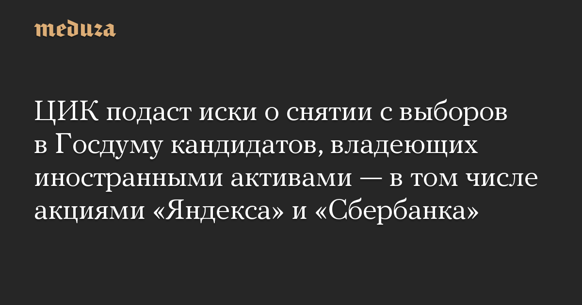 ЦИК подаст иски о снятии с выборов в Госдуму кандидатов, владеющих иностранными активами — в том числе акциями «Яндекса» и «Сбербанка»