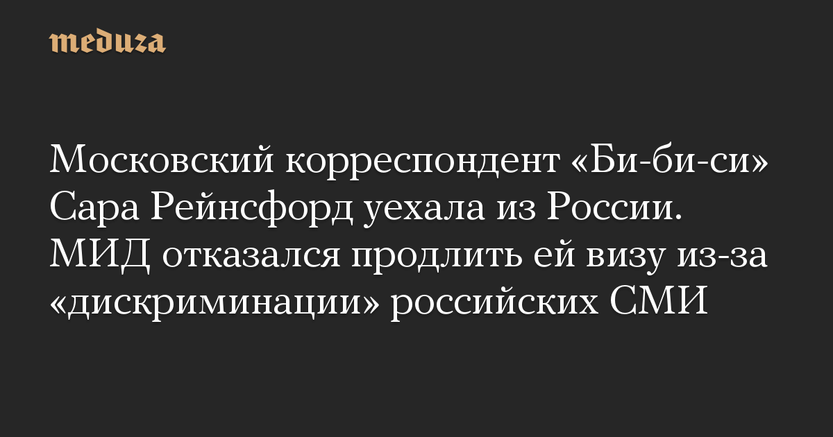 Московский корреспондент «Би-би-си» Сара Рейнсфорд уехала из России. МИД отказался продлить ей визу из-за «дискриминации» российских СМИ