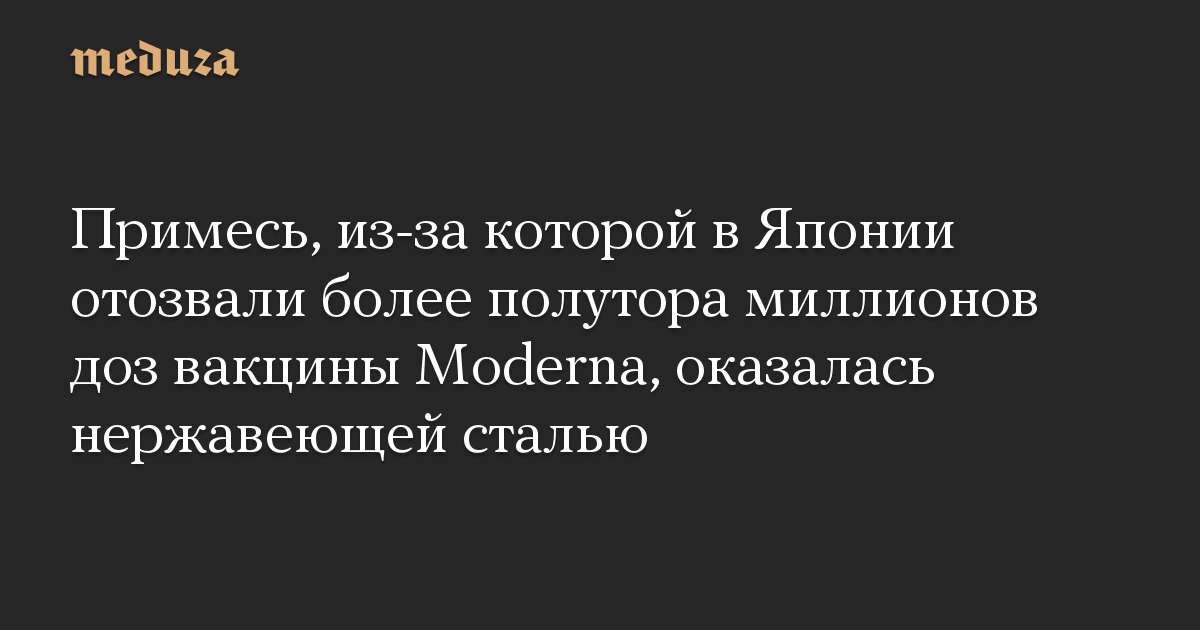 Ранее неизвестная субстанция, из-за наличия которой в Японии приостановили использование трех партий вакцины Moderna, оказалась нержавеющей сталью. Об этом говорится в совместном заявлении Moderna и японской компании Takeda, которая занимается распространением вакцины в стране.