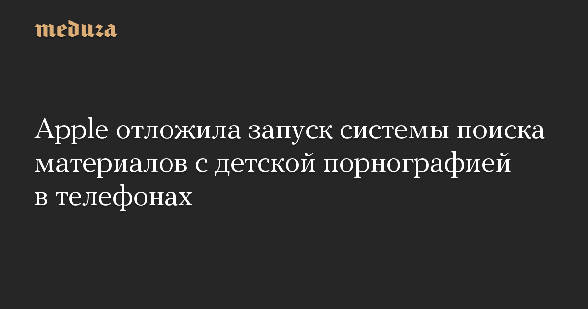 Корпорация Apple решила отложить запуск системы поиска в телефонах изображений с сексуальным насилием над детьми, которую планировалось протестировать в США. Планы запустить такие проверки вызвали критику со стороны экспертов по безопасности и правозащитников, указывавших, что Apple может создать опасный прецедент.