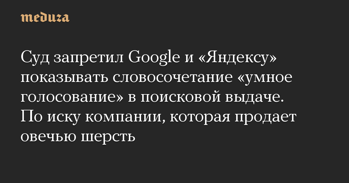 Суд запретил Google и «Яндексу» показывать словосочетание «умное голосование» в поисковой выдаче. По иску компании, которая продает овечью шерсть