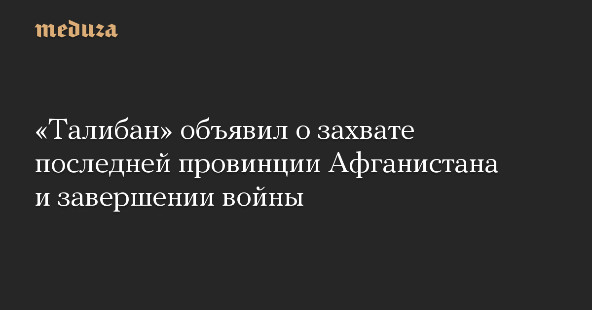 «Талибан» объявил о захвате последней провинции Афганистана и завершении войны