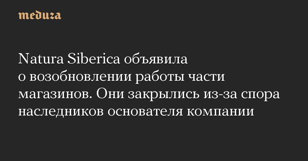 Natura Siberica объявила о возобновлении работы части магазинов. Они закрылись из-за спора наследников основателя компании