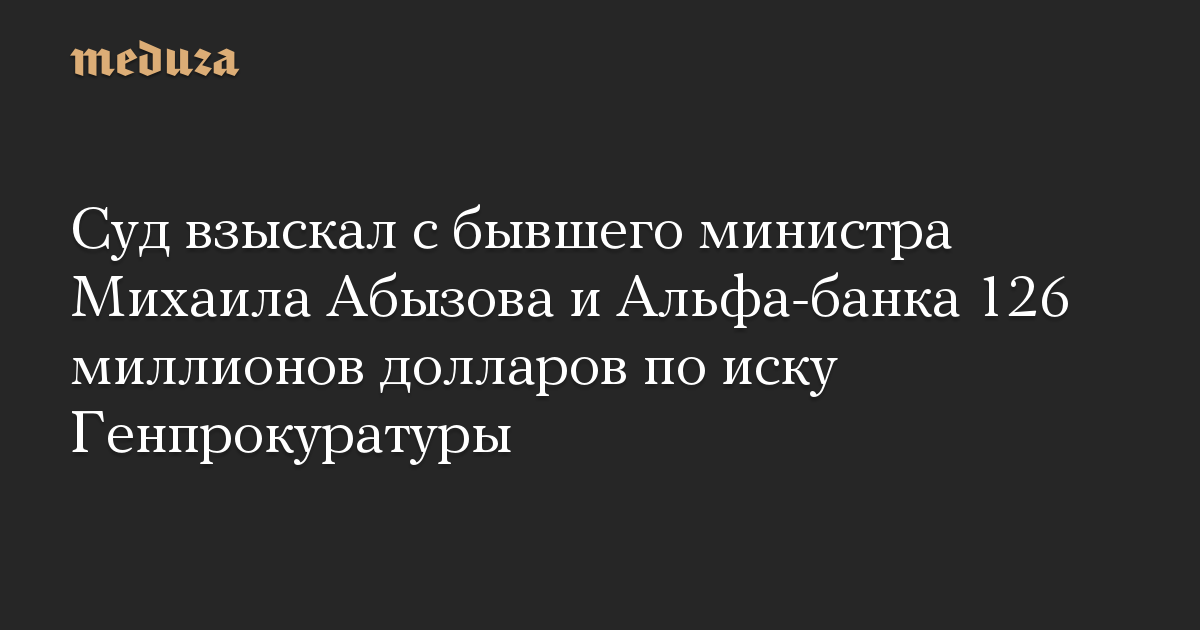 Суд взыскал с бывшего министра Михаила Абызова и Альфа-банка 126 миллионов долларов по иску Генпрокуратуры